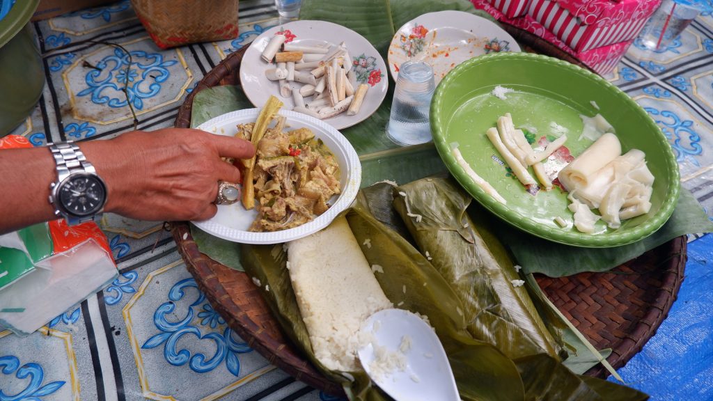 Nasi panas itu bertambah nikmat ketika dipadukan umbut si’it bakar, rebung manis bakar, dan daging ayam kampung yang juga dimasak di dalam bambu. Nikmat kuliner khas Loksado itu tiada duanya. Tanpa ragu, para pengunjung menambah nasi.